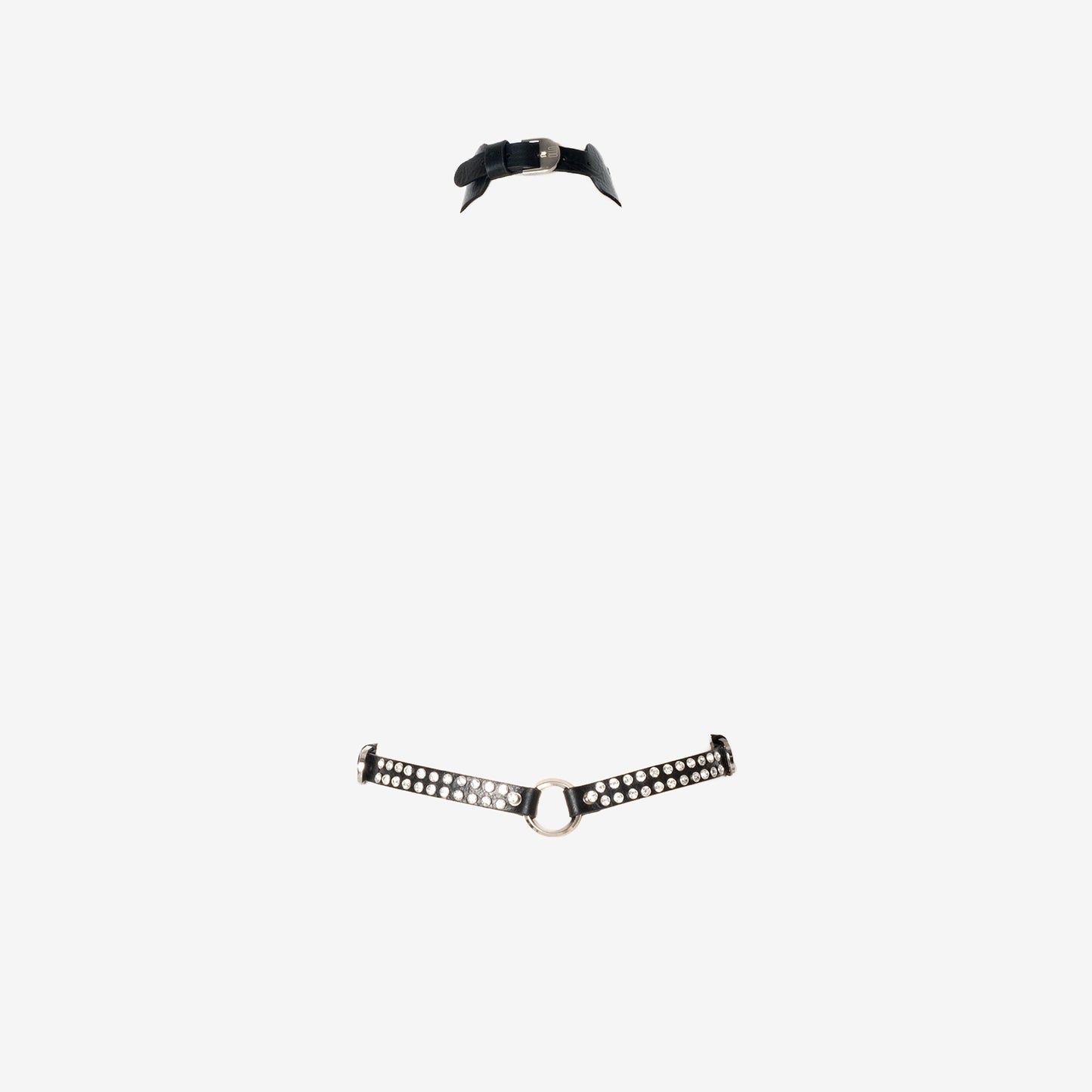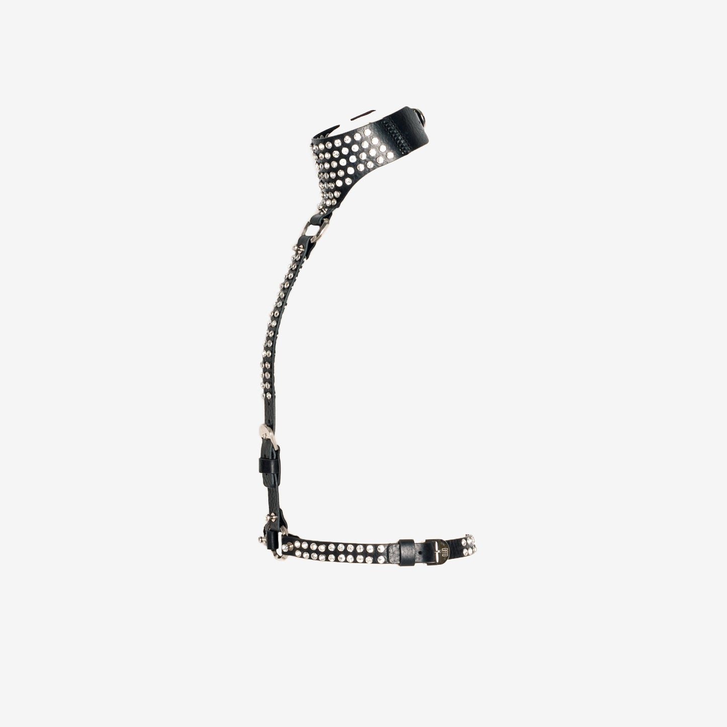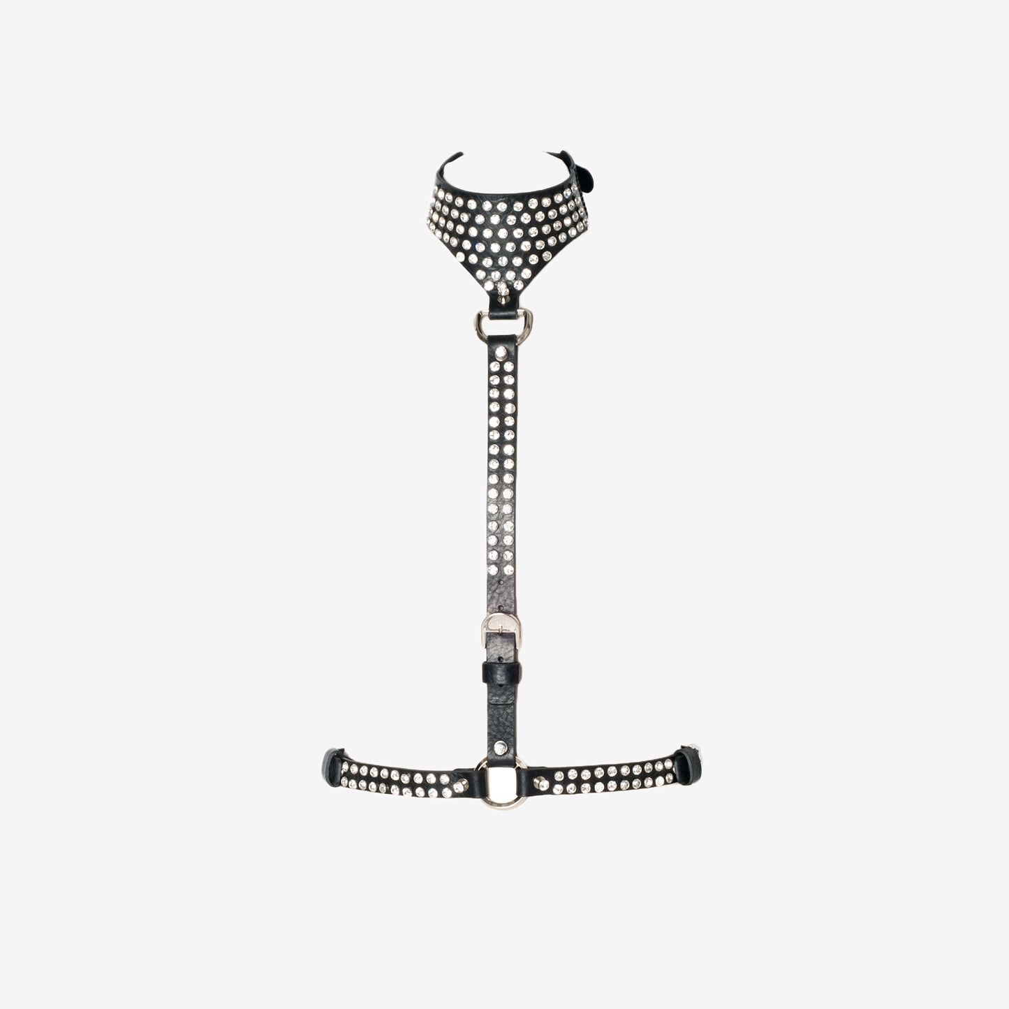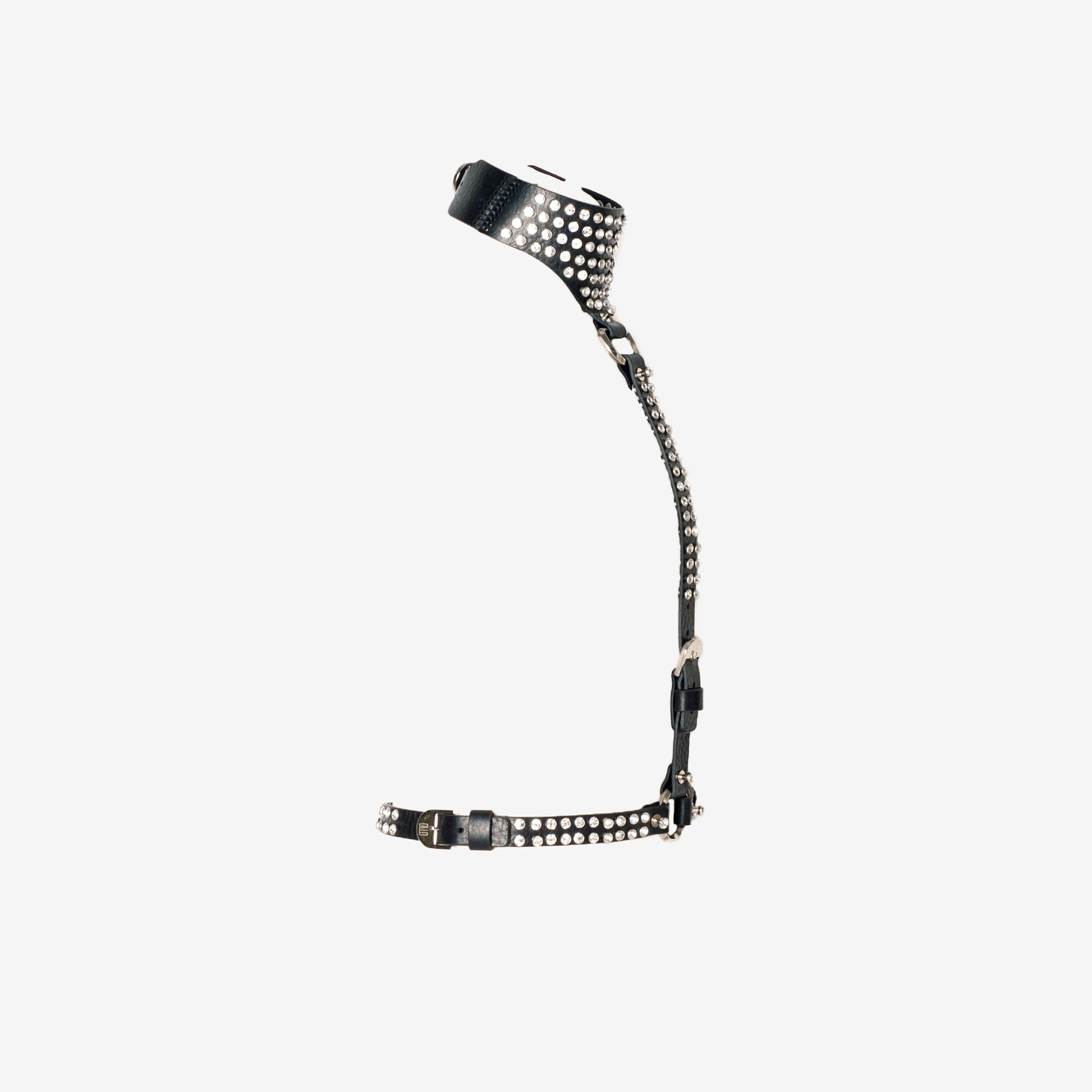Crystal leather harness-belt with silver-toned metal accessories. Finished with double buckle closures.
