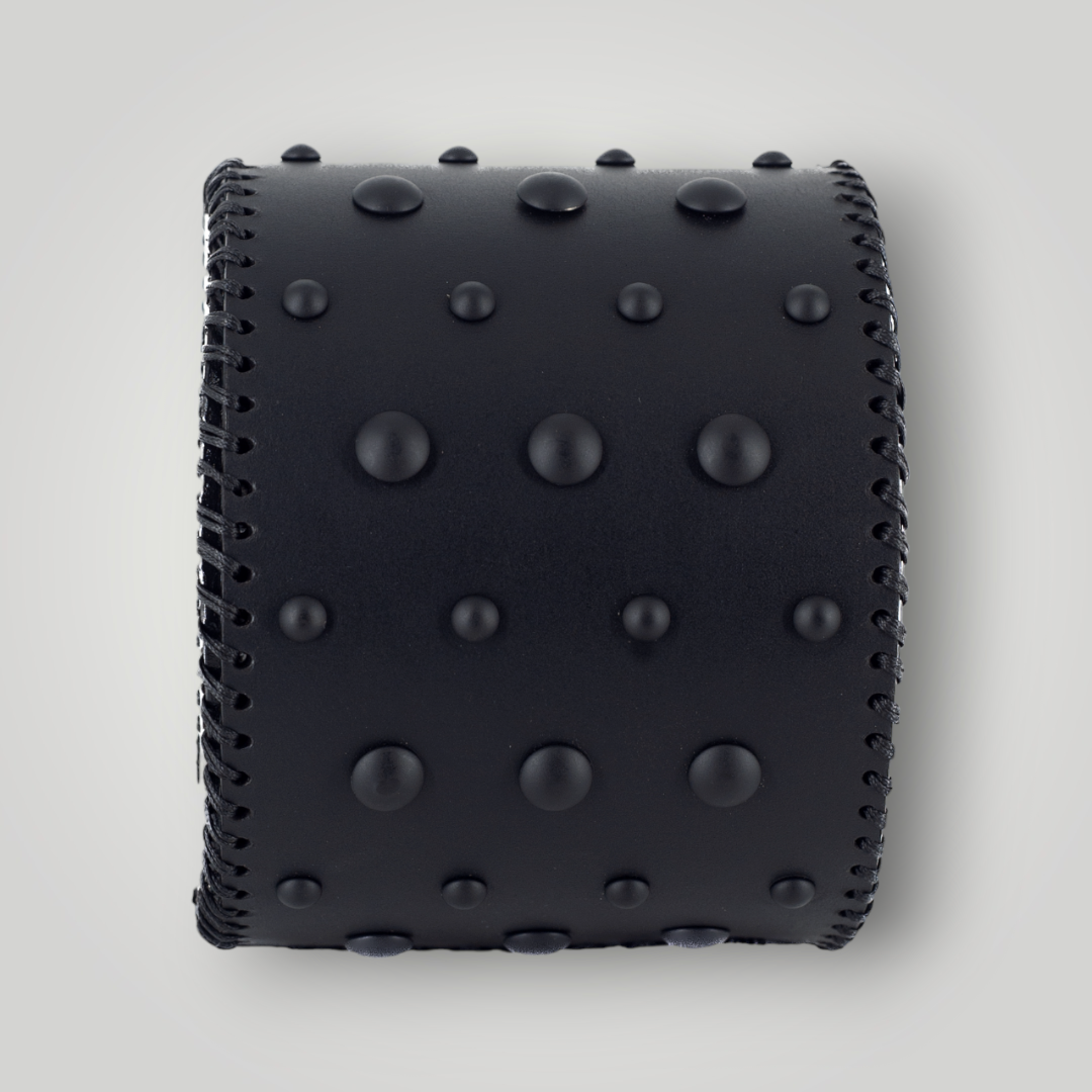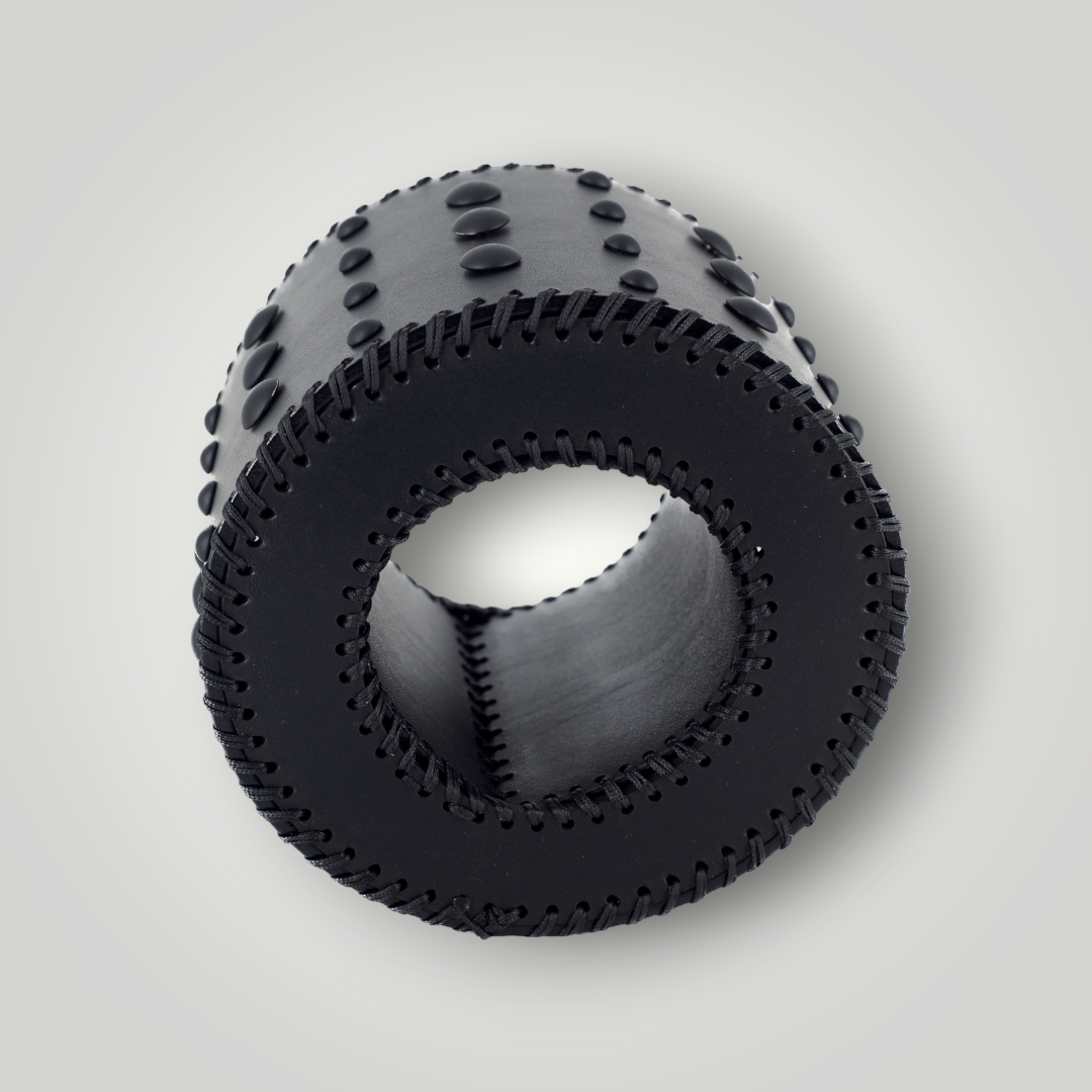 Handcrafted Leather Bangle Bracelet: Timeless Elegance Meets Modern Design. Skillfully hand-stitched by artisans using saddle stitching for intricate, captivating patterns. Made from premium vegetable-tanned leather, it naturally develops a rich patina, adding character over time. The bracelet's bold, geometric avant-garde design creates a striking visual impact, showcasing individual style and confidence. Comfortable and durable, with lightweight construction for easy wear. A perfect blend of traditional elegance and contemporary flair, this bracelet is a unique, stylish addition to any ensemble.